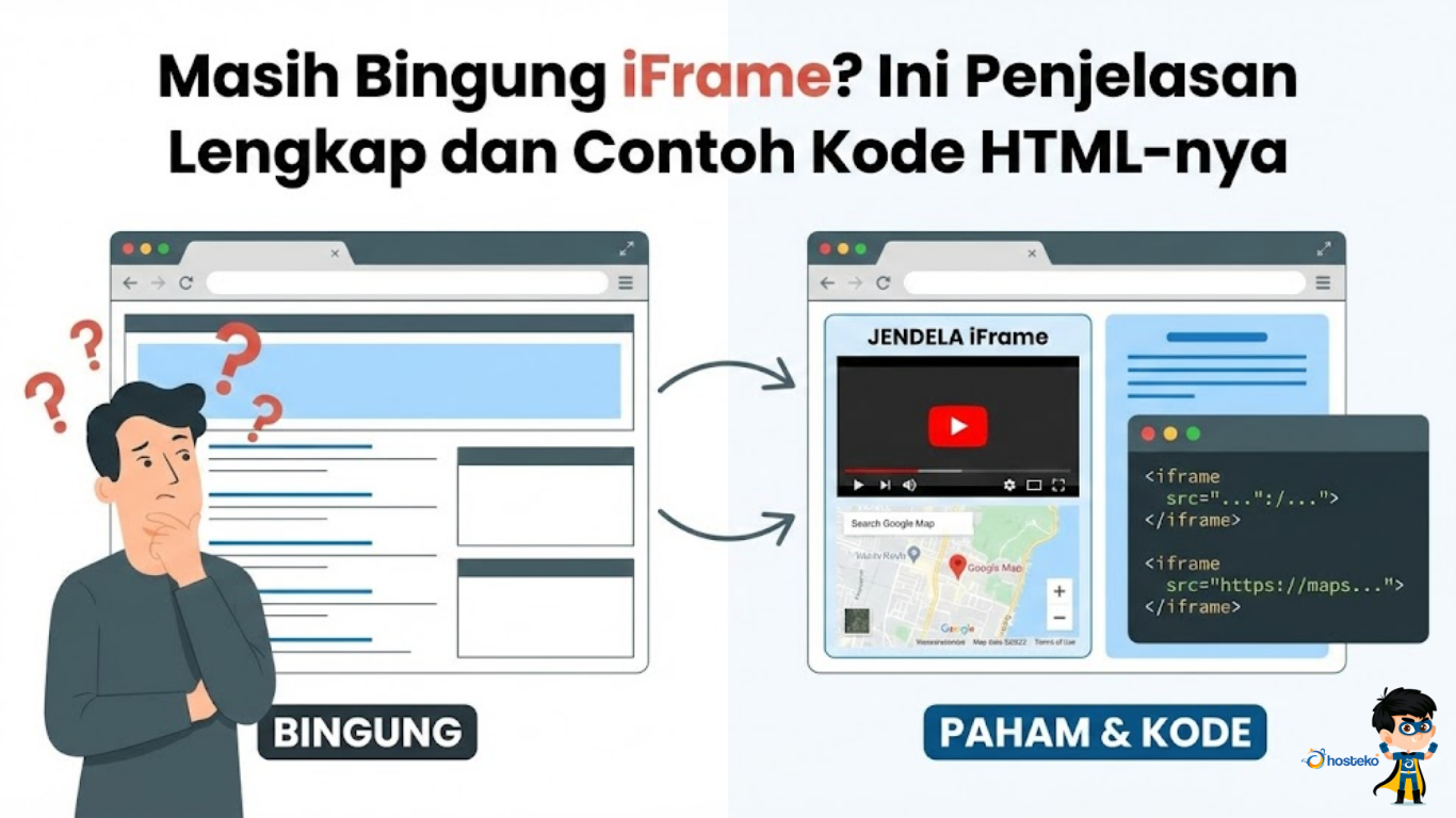 iFrame adalah elemen HTML yang memungkinkan Anda menampilkan halaman web atau konten eksternal di dalam halaman website. Penggunaannya sangat umum untuk embed video, peta, dan dokumen. Meski praktis, penggunaan iFrame harus mempertimbangkan aspek keamanan dan performa.