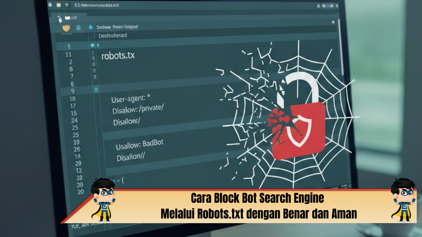 Robots.txt adalah file penting dalam pengelolaan website yang berfungsi untuk memberikan instruksi kepada bot atau crawler mesin pencari mengenai halaman atau direktori mana yang boleh dan tidak boleh diakses. Dengan pengaturan robots.txt yang tepat, pemilik website dapat mengontrol proses crawling, melindungi area tertentu, serta mengoptimalkan performa SEO. Artikel ini akan membahas secara lengkap dan detail mengenai cara memblok bot search engine menggunakan robots.txt, mulai dari pengertian, fungsi, struktur, hingga contoh penerapannya pada website WordPress.