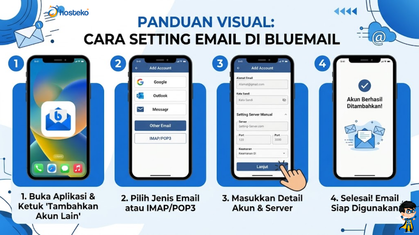 Setting email di BlueMail sangat mudah, bahkan untuk pemula. Dengan mengikuti langkah-langkah di atas, Anda bisa menghubungkan email pribadi maupun bisnis hanya dalam beberapa menit.